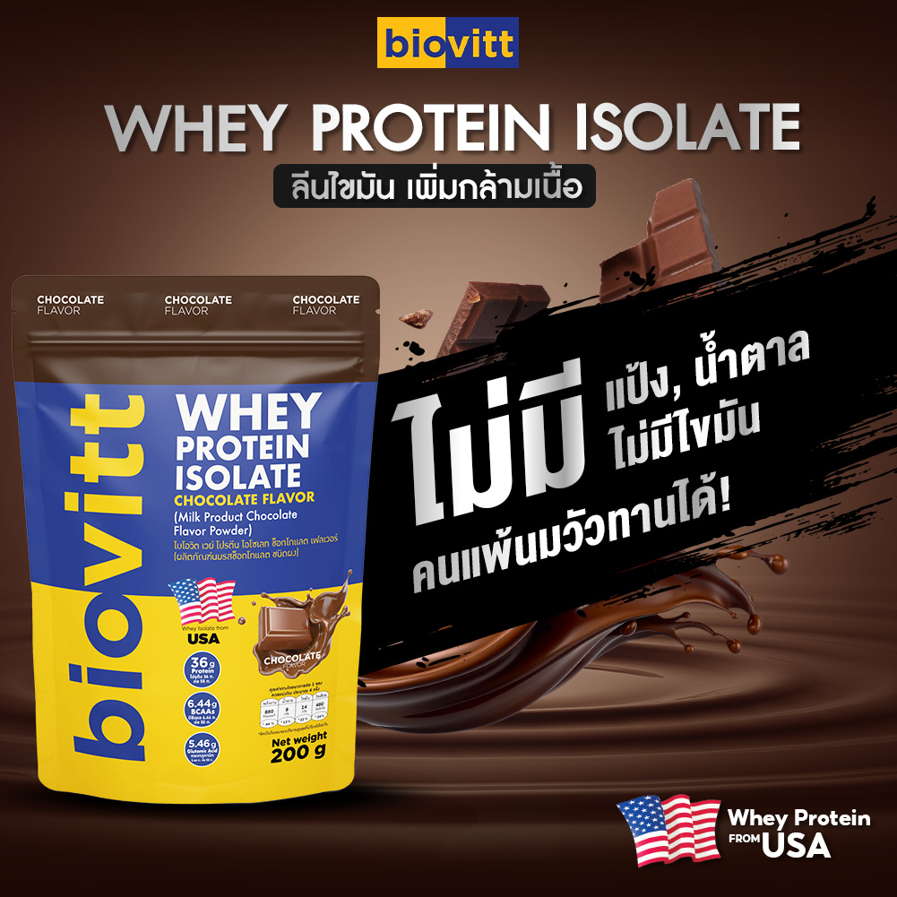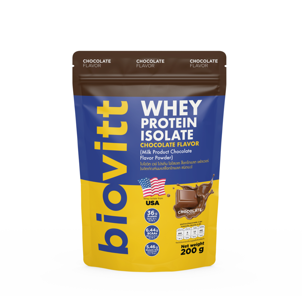Whey Protein Isolate เวย์โปรตีน ไอโซเลท รสช็อกโกแลตเข้มข้น ขนาด 200 กรัม นวัตกรรมชิ้นล่าสุดที่จะเปลี่ยนวิถีการทานเวย์ของคุณจากนี้และตลอดไป! ไม่เพียงอัดแน่นไปด้วยขุมพลังจากเวย์โปรตีน ไอโซเลท นำเข้ามาจากอเมริกาและยังปราศจากสารปรุงแต่งและสารเคมี 4 ชนิด จึงปลอดภัยต่อทุกคน ทานได้อย่างต่อเนื่องโดยไร้กังวล แตกต่างจากเวย์โปรตีนอื่นๆ