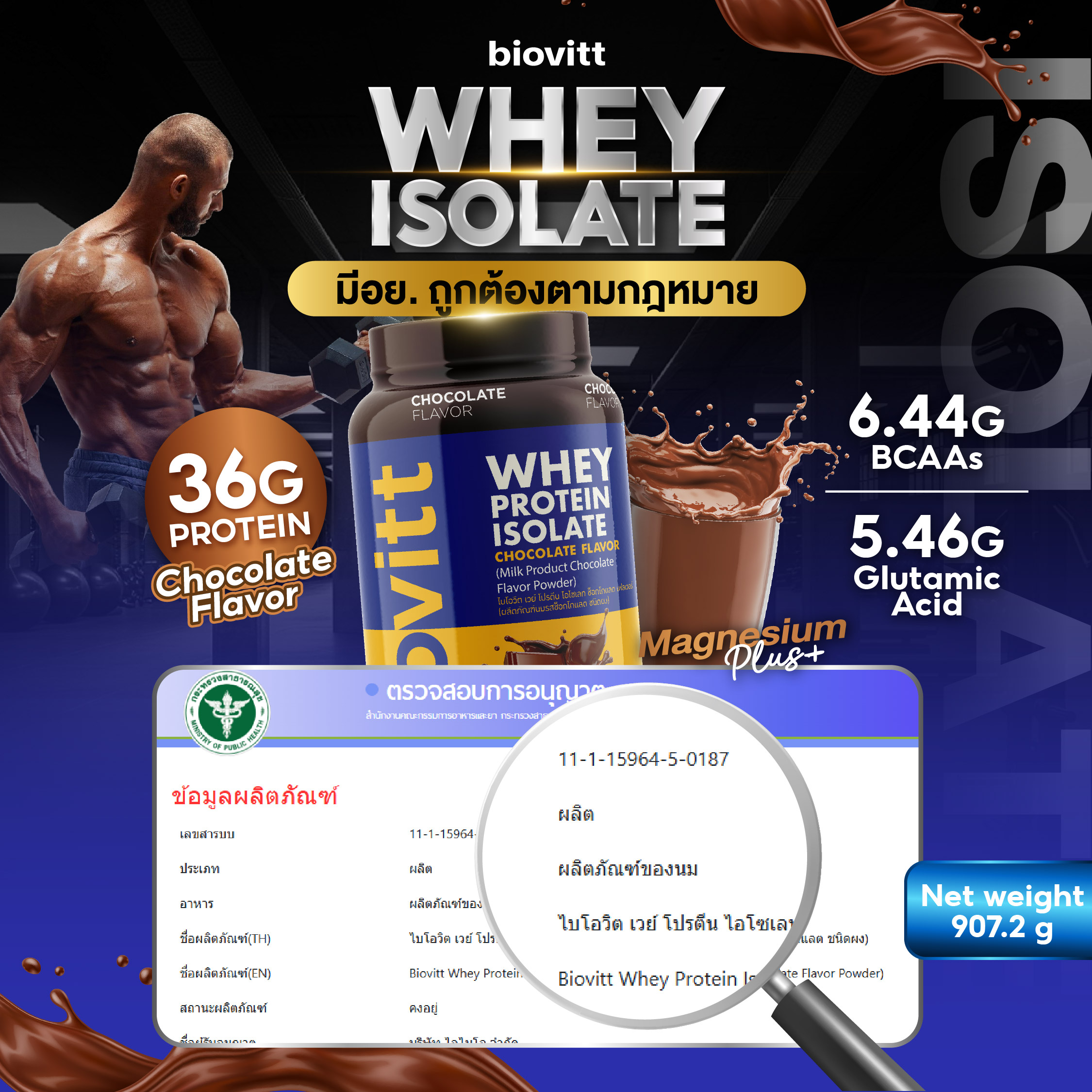 เวย์โปรตีน ไอโซเลท รสช็อกโกแลตเข้มข้น