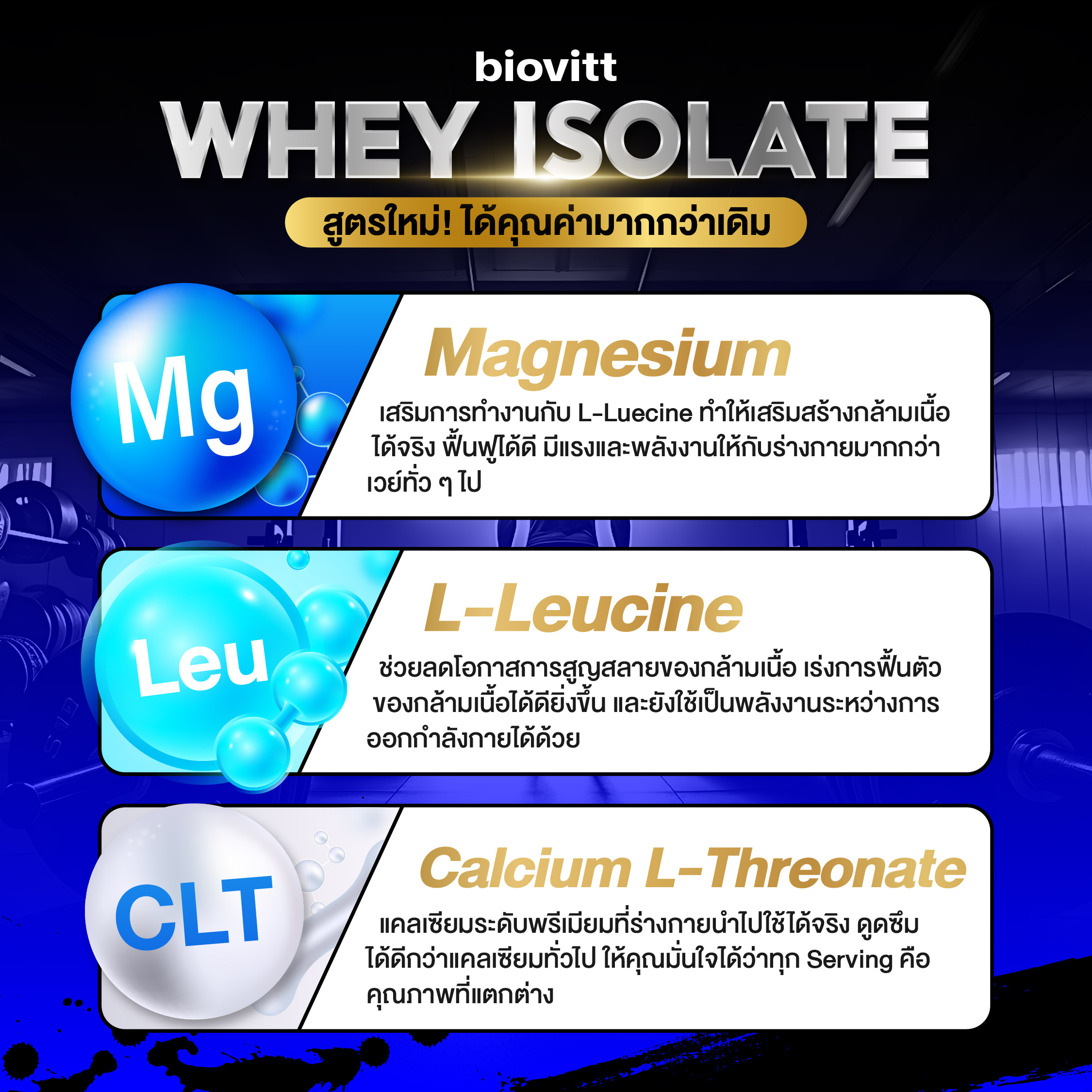 เวย์โปรตีนไอโซเลท ถือว่าเป็นเวย์โปรตีนที่มีคุณภาพสูงที่สุด เนื่องจากจะมีปริมาณน้ำตาล และไขมันที่น้อยกว่าเวย์โปรตีนแบบทั่วไป และช่วยในเรื่องของการเพิ่มโปรตีนต่อวันพร้อมทั้งเร่งการฟื้นตัวของกล้ามเนื้อ ทำให้กล้ามเนื้อคมชัด